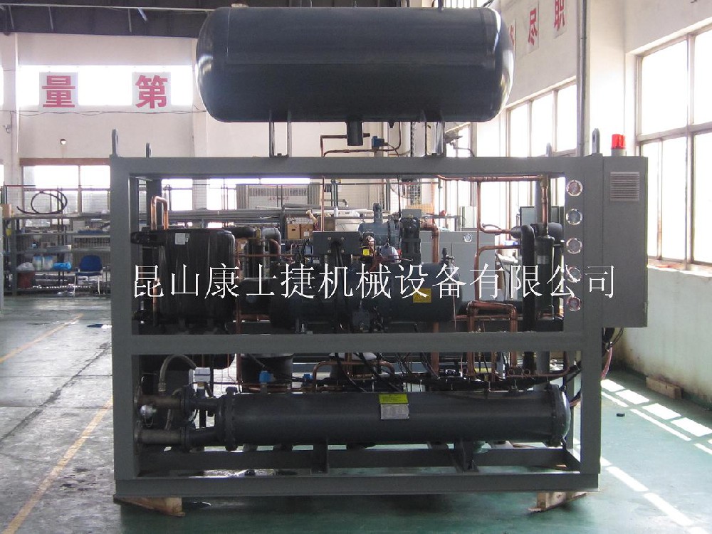 制藥業用零下70度(-70℃)低溫復疊制冷機組系統由高溫部分和低溫部分組成.其低溫部分提供所需的深冷能力,采用R13、R23等低溫制冷劑,但這類制冷劑的冷凝溫度要求很低,同等壓力下用冷卻水難以將其冷凝。高溫部分使用中溫制冷劑循環,其作用是用于冷凝低溫制冷劑,高溫部分和低溫部分共用一個蒸發冷凝器而“復疊”,從而組成應用兩種制冷劑的復疊式制冷循環。低溫制冷機組是我公司主要技術人員通過低溫冷水機組設計經驗,結合國內外同類產品的先進技術而設計開發的新低溫制冷機組,具有高效、節能、環保、高可靠性等特點,多項先進技術的應用,使該產品的綜合技術水平達到**水平。