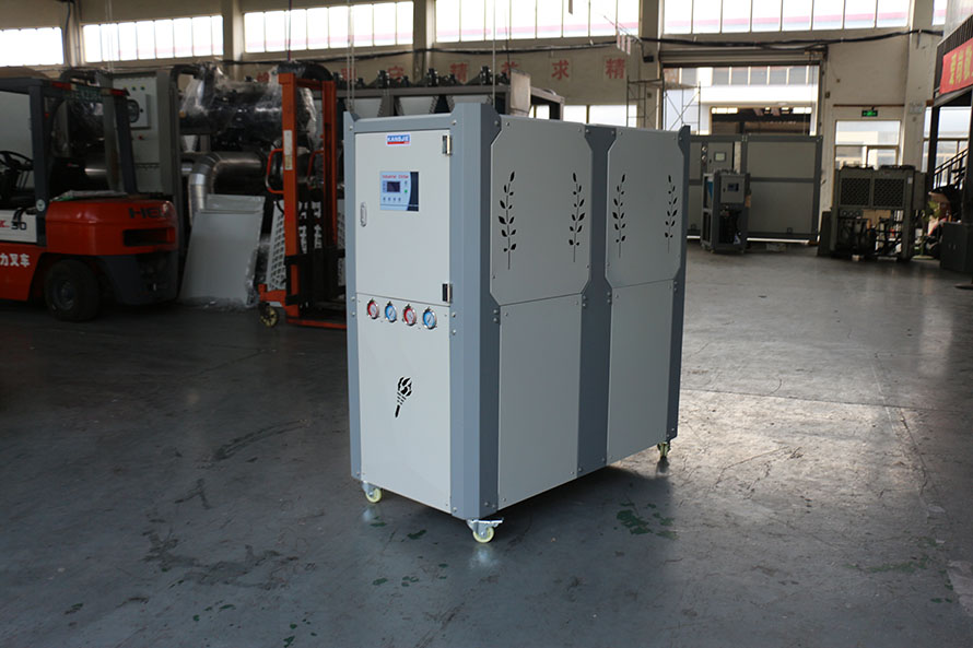 1、風冷式壓延機冷卻用冰水機,通過風扇以空氣為冷凝方式的控溫設備,有箱式和螺桿式;